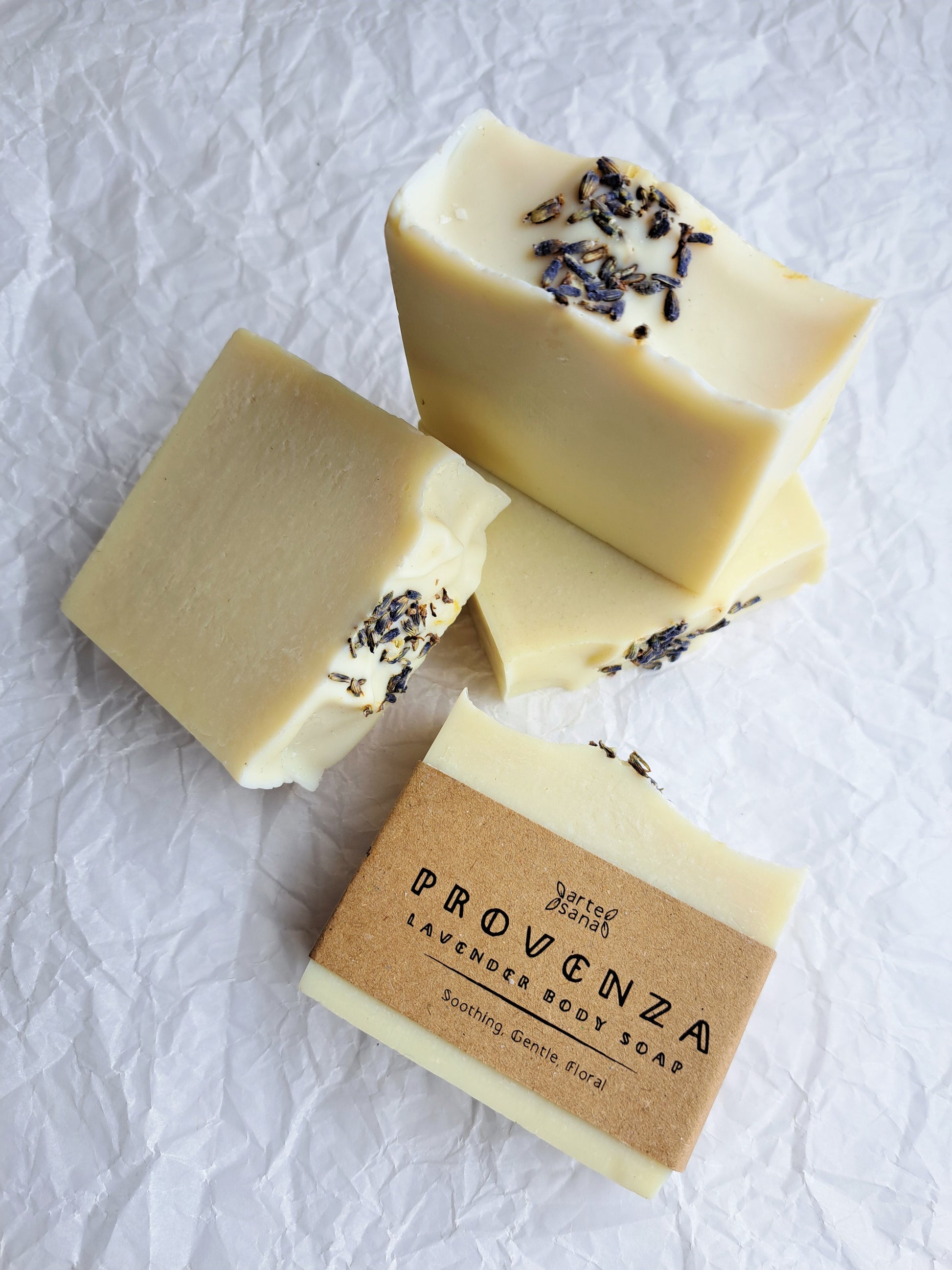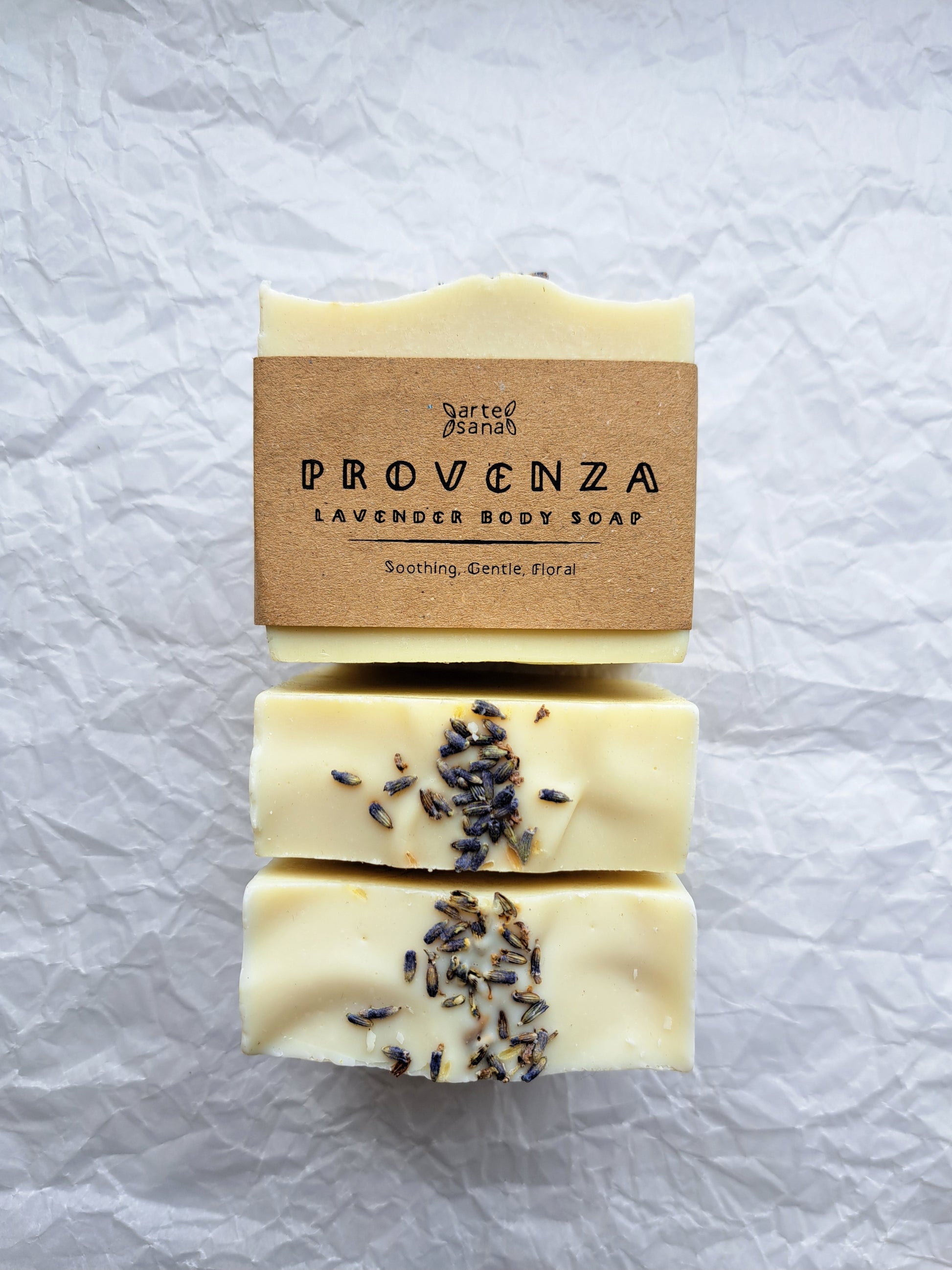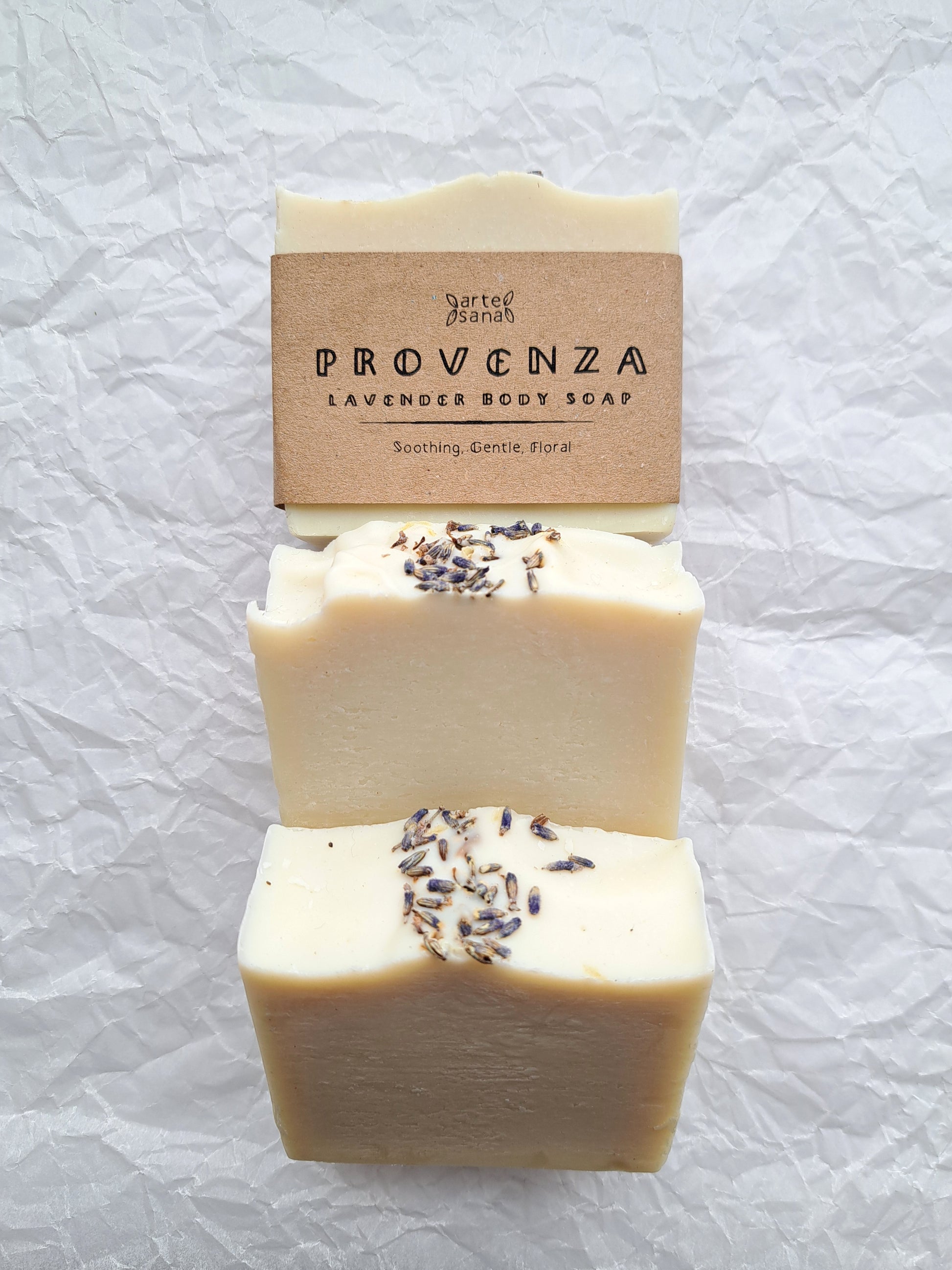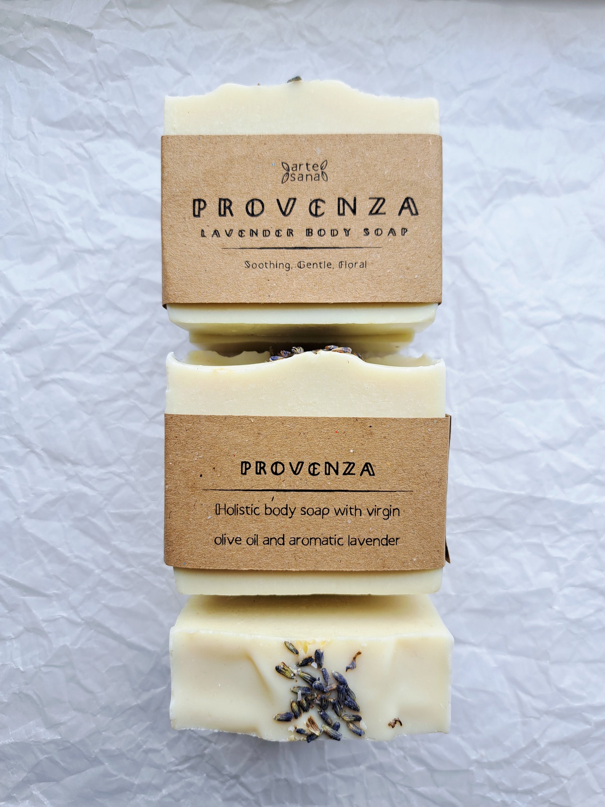 Provenza är en naturlig handgjord hårdtvål som kombinerar skonsam rengöring med de vårdande egenskaperna från ren olivolja och en mild doft av lavendel. Denna eleganta tvål ger din hud en mjuk och behaglig känsla samtidigt som den bjuder på en avslappnande aromatisk upplevelse. Som biologiskt nedbrytbar tvål är den perfekt för både hemmabruk och utomhusäventyr.